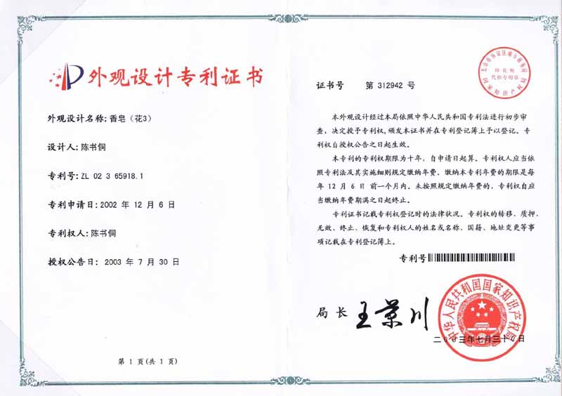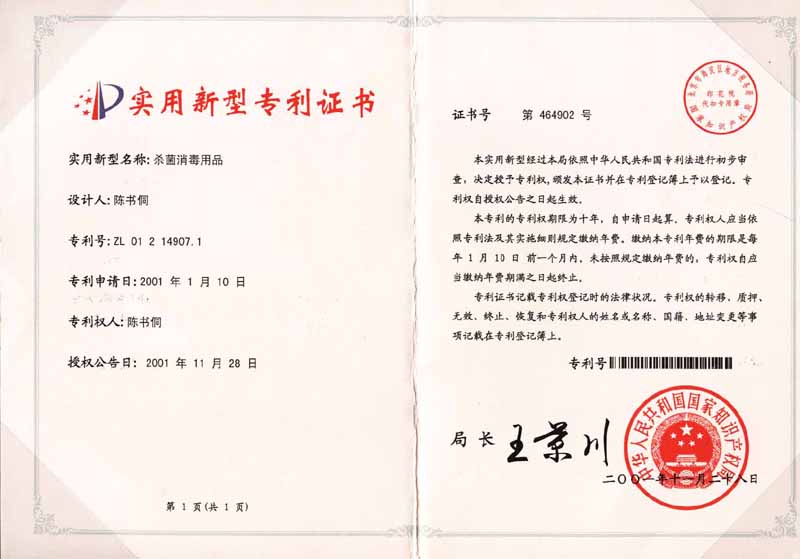 CHINESE PATENT CERTIFICATE